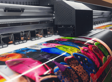 Supports variés : flyers, affiches, bâches, brochures, catalogues, roll-up, etc.